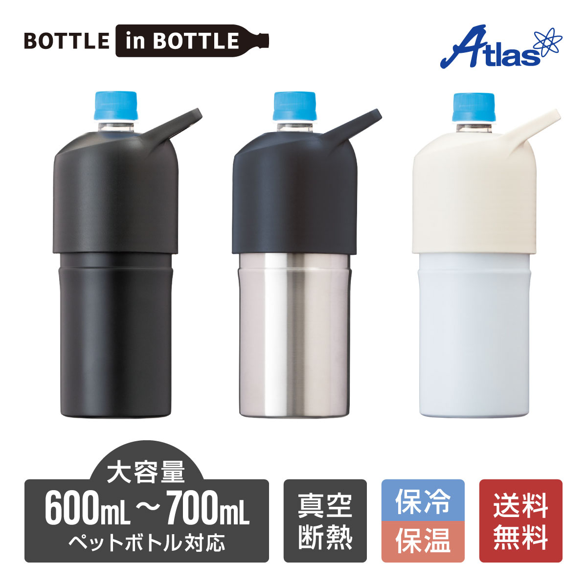 アトラスのペットボトルホルダーは、3種類の容量に対応しています。